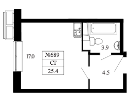 Студия 25.4 м²